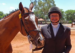 So, I'm back in Bangalore and it's that time of year for the South India Equestrian Association Equest 2007. This year, I was competing for the first time, on my newly 'adopted' horse, Royal Majesty. I'm glad to say that for first timers we didn't shame ourselves... we got a first place in the 'Pas de Quatre' with our friends Eva, Vika, and Cathy; a second place in the 'Pas de Deux' with Cathy, and a fourth place/honourable mention in the Amateur Dressage. So not bad to say we have just become partners (a week or so ago) and I'm not good at handling the pressure of competition! I'm sure it will get easier?!?!